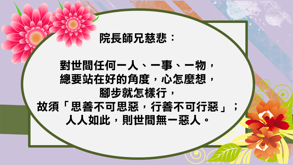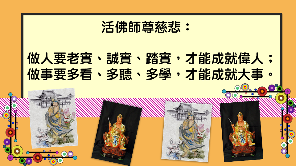 會發現原來很多人都值得尊重和學習。 不圓滿是自己有煩惱,不清淨是自己有業障。